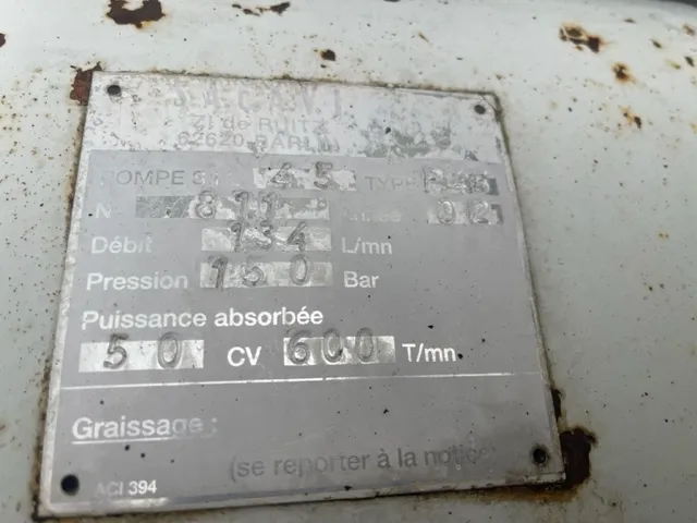 Pompe HP SACAVI 45P45, 134 l/min - 150 bars